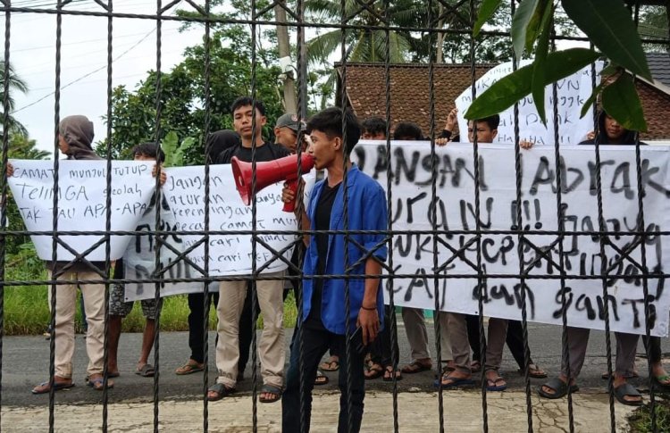 Dinilai tidak netral. Barisan garda terdepan (BIGADE) Mahasiswa dan pemuda Pandeglang lakukan aksi unjukrasa di depan kantor kecamatan Munjul